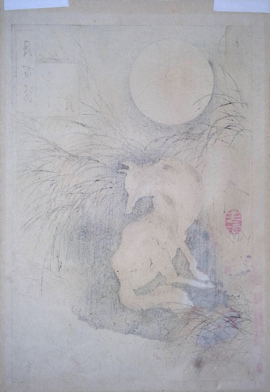 An Artwork Interpretation of the Japanese Artist Tsukioka Yoshitoshi's Woodblock Print: "The Cry of the Fox" from the series "One-Hundred Aspects of the Moon" This essay was written and generously...