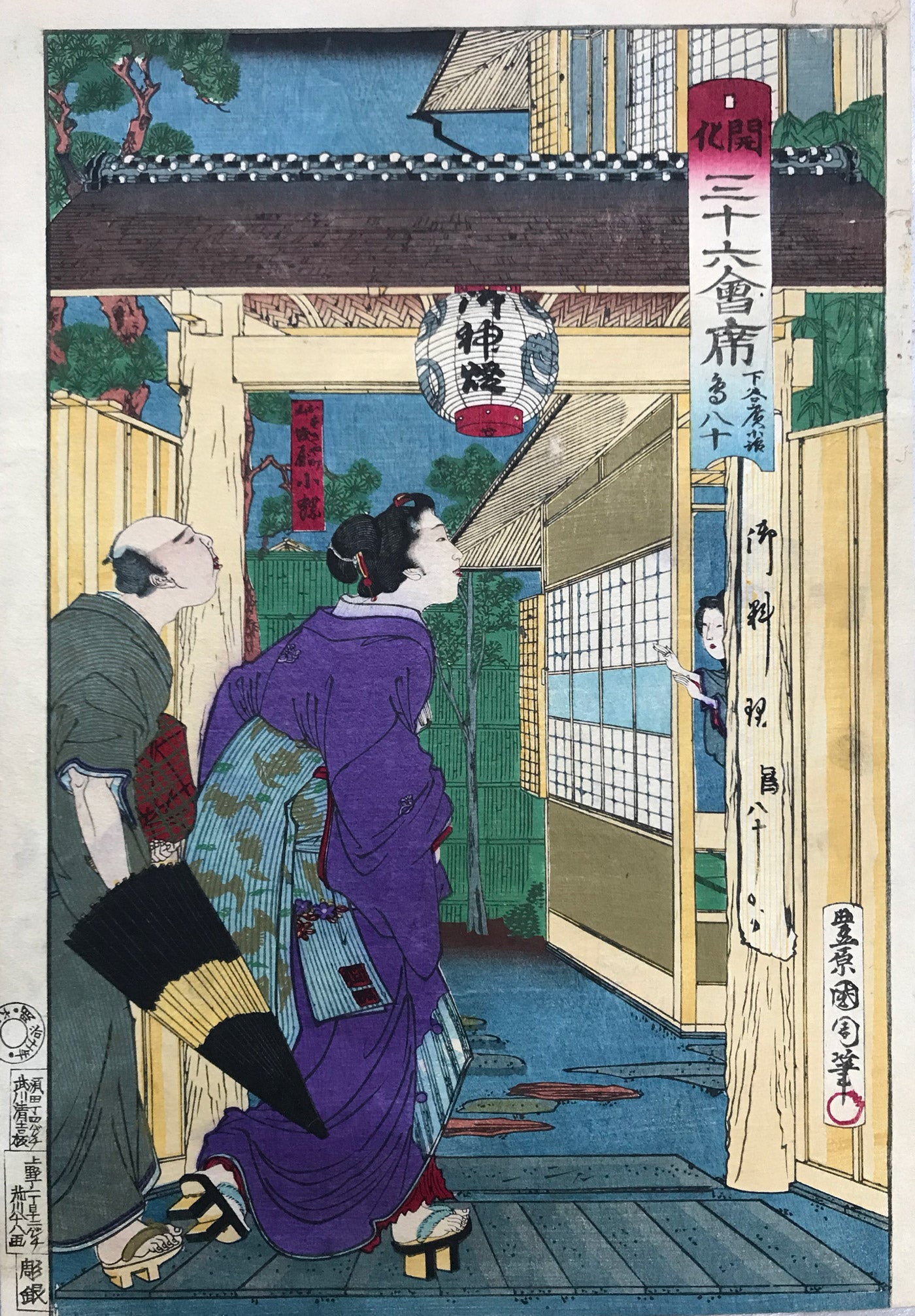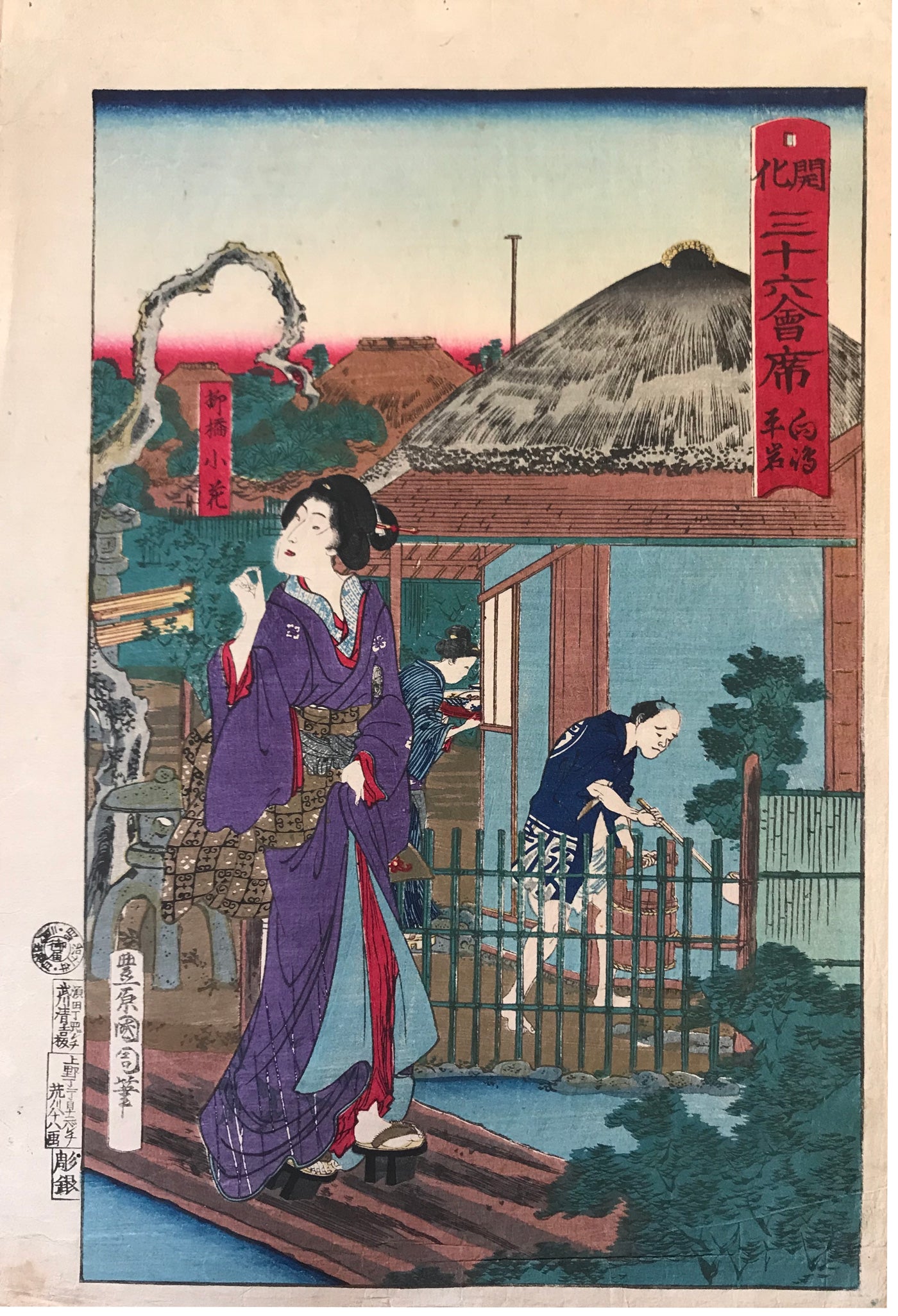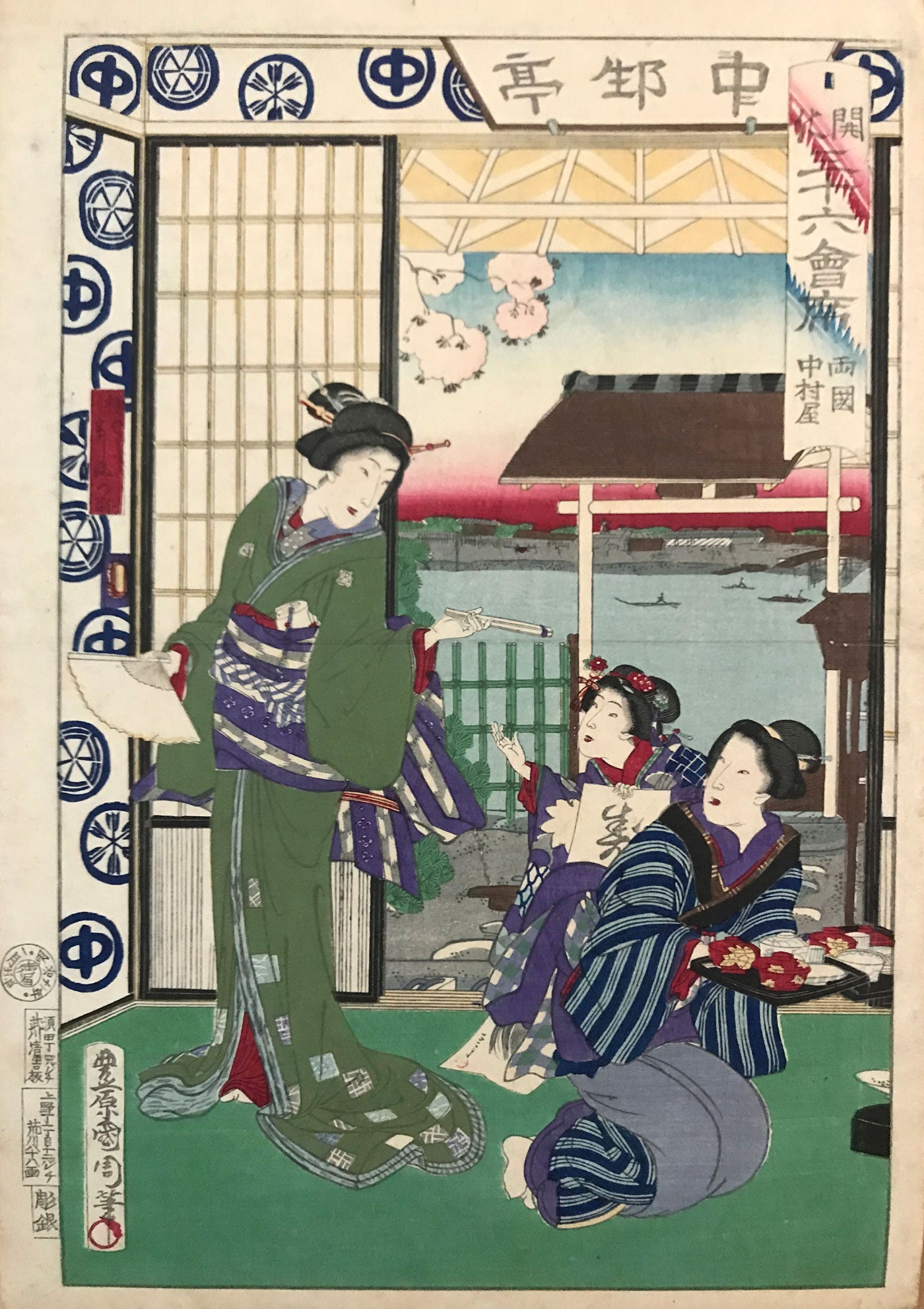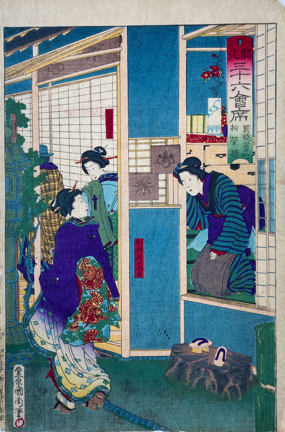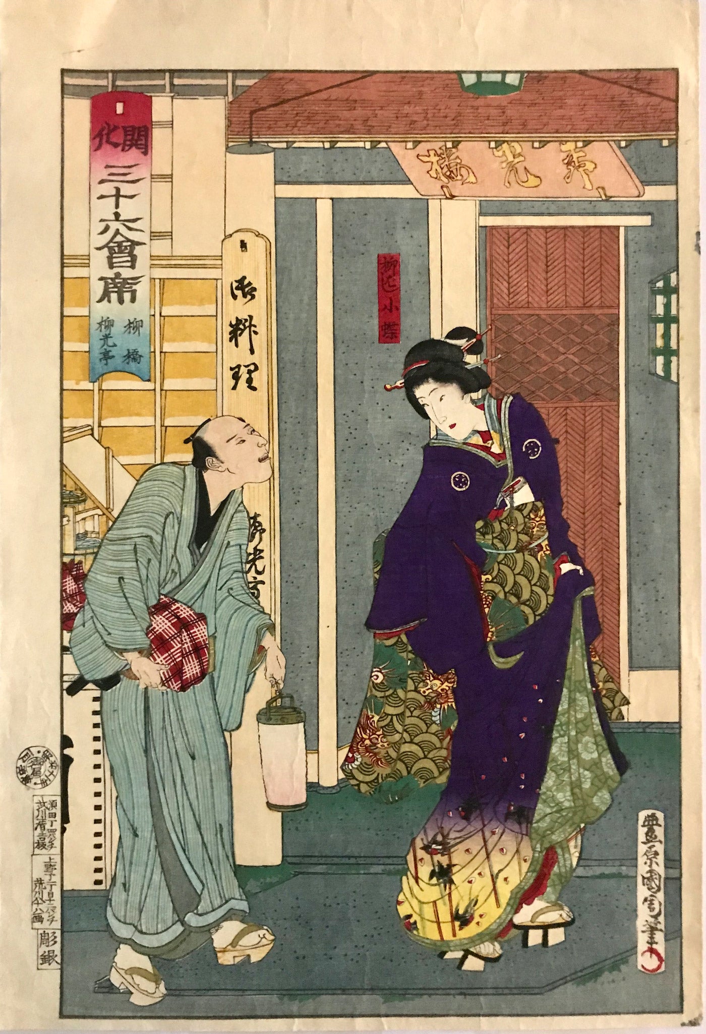 To read more about Restaurant Themed Woodblock Prints by Kunichika and other artists, please check our blog. Note:The prints in this collection below are not for sale BUT we may have some duplicates for sale if you do a search for prints from this artist.