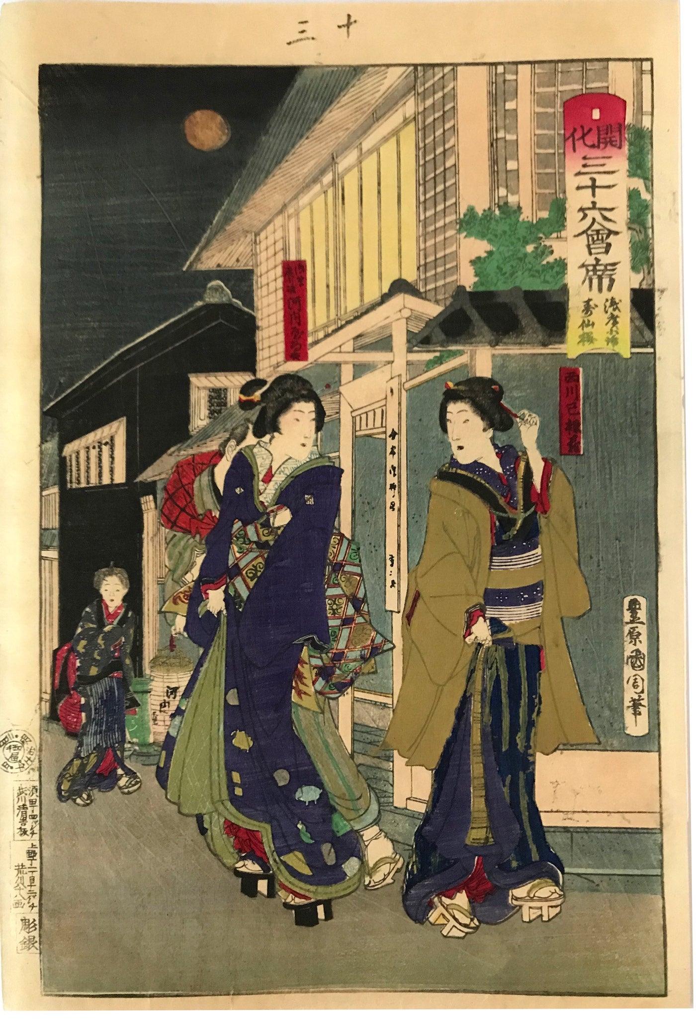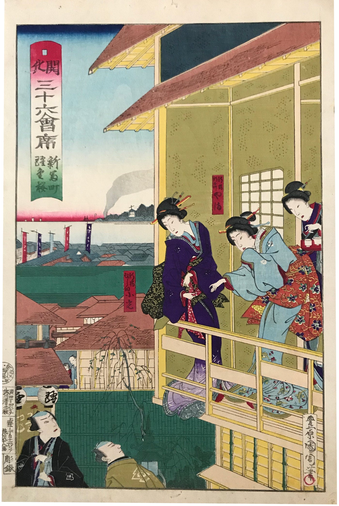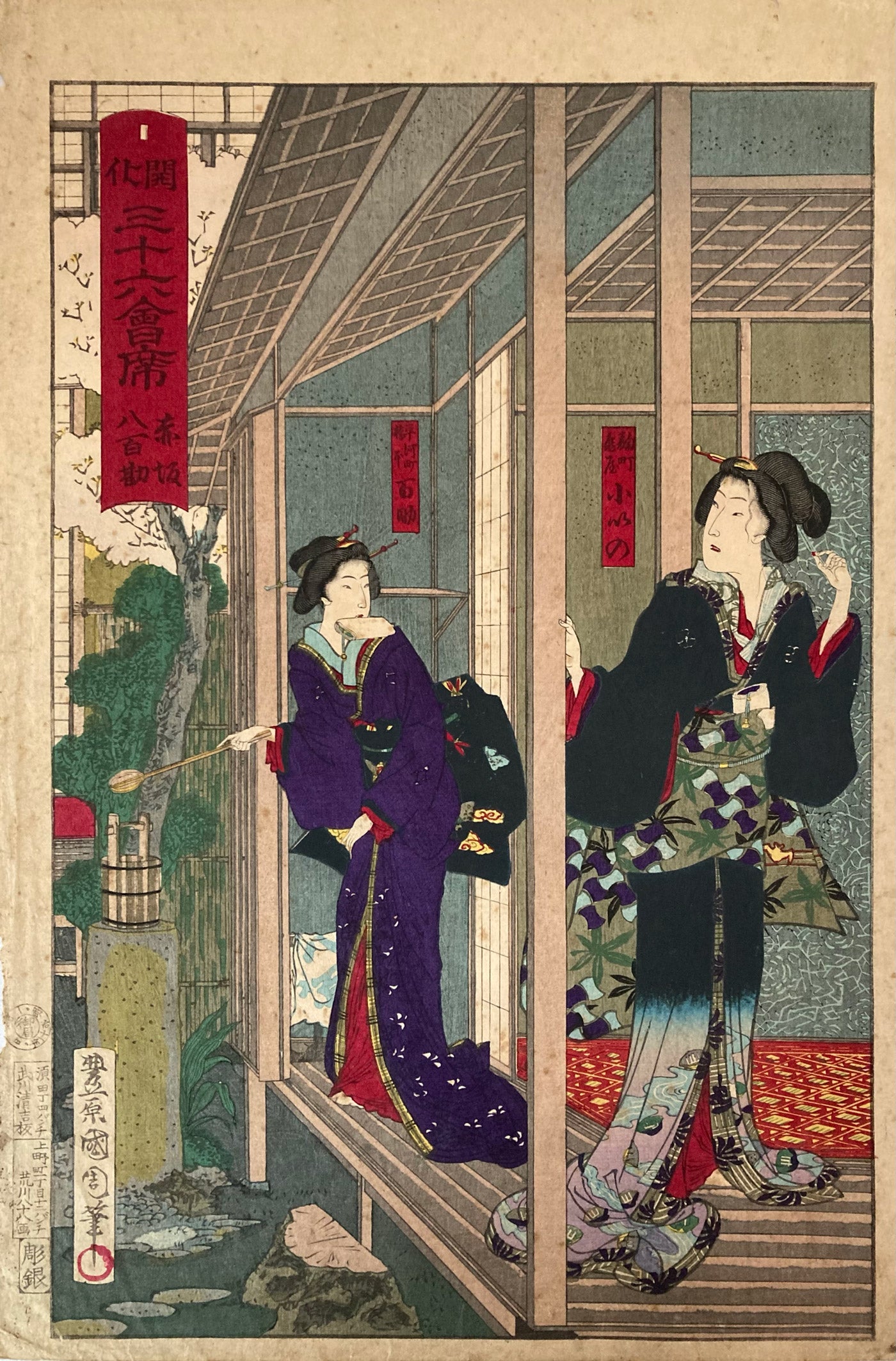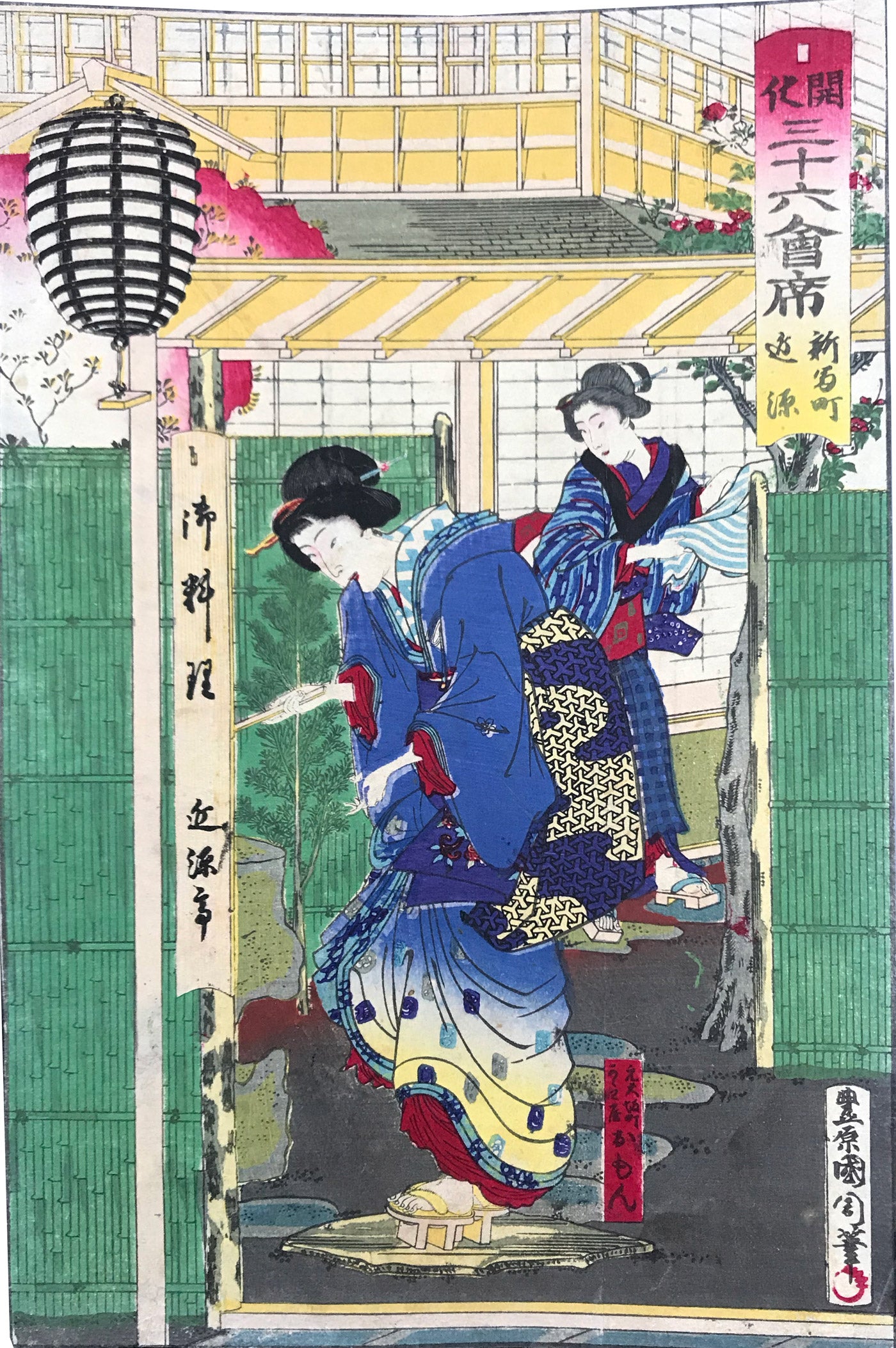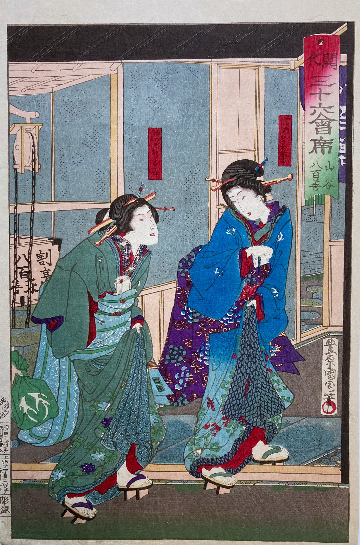 To read more about Restaurant Themed Woodblock Prints by Kunichika and other artists, please check our blog. Note:The prints in this collection below are not for sale BUT we may have some duplicates for sale if you do a search for prints from this artist.