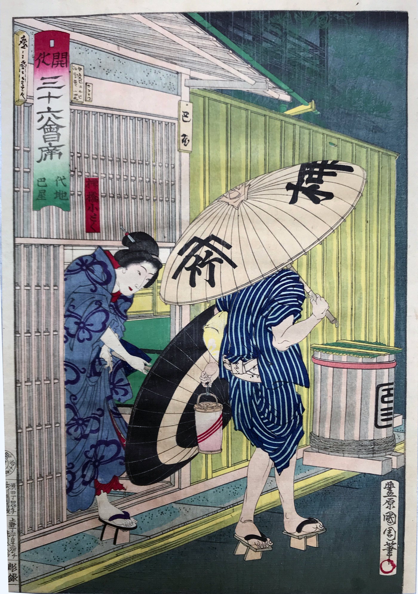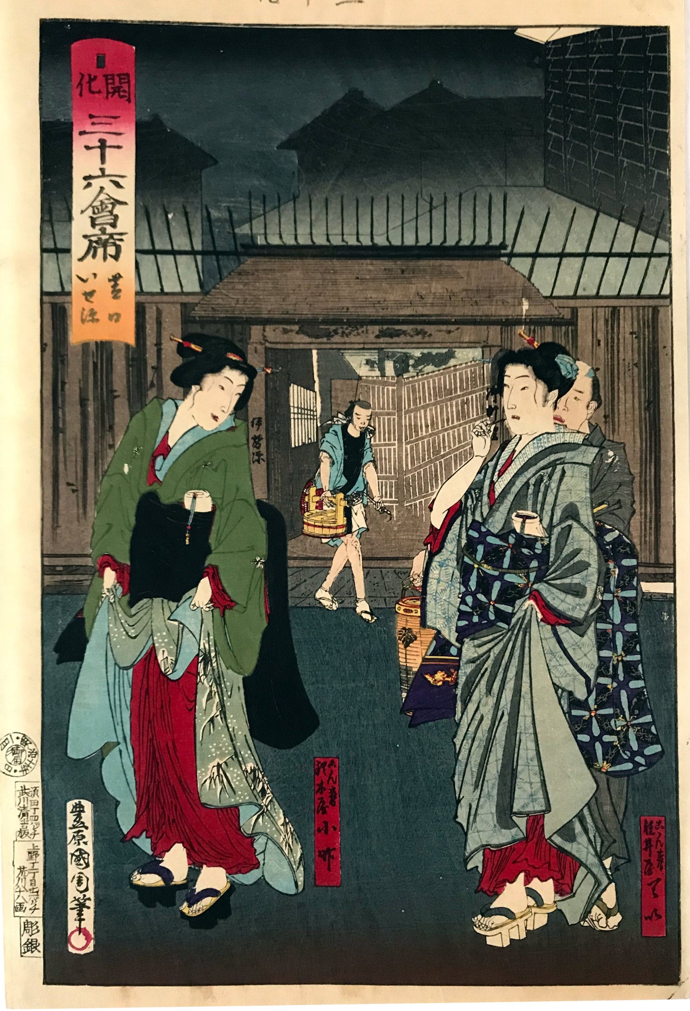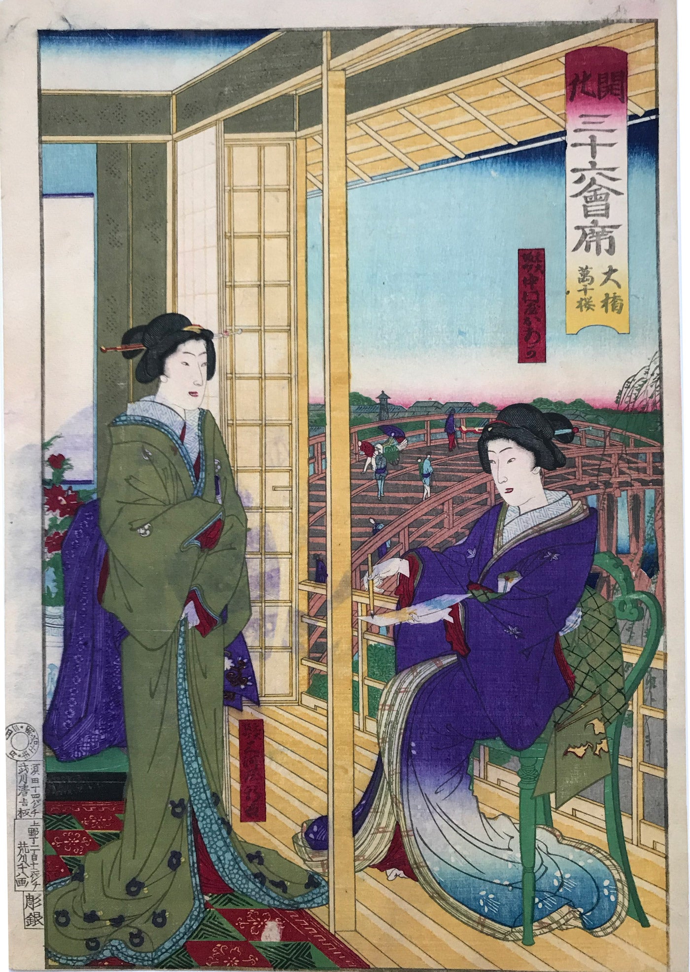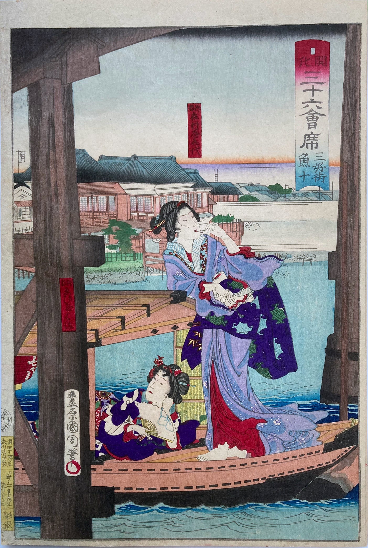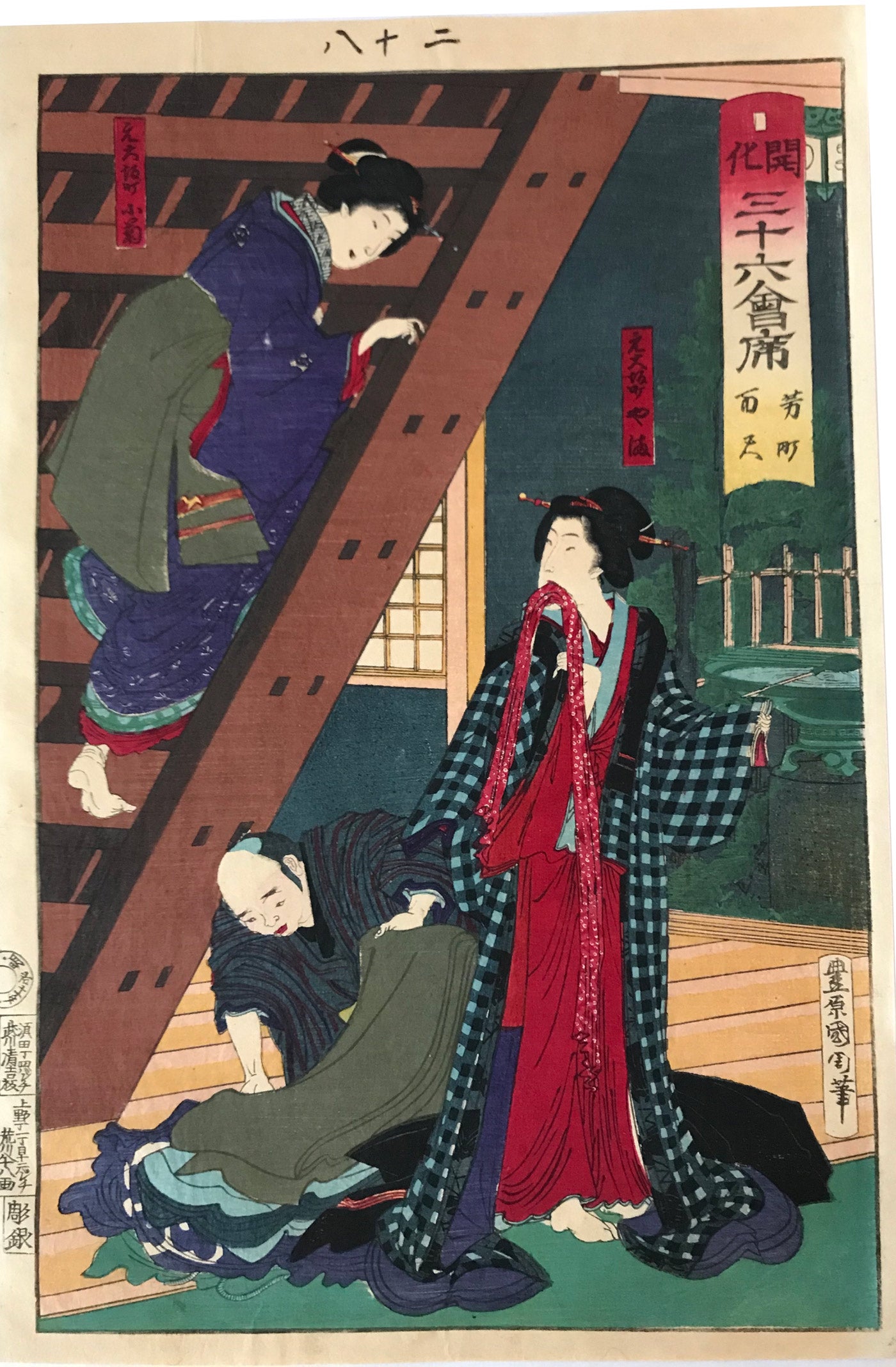 To read more about Restaurant Themed Woodblock Prints by Kunichika and other artists, please check our blog. Note:The prints in this collection below are not for sale BUT we may have some duplicates for sale if you do a search for prints from this artist.