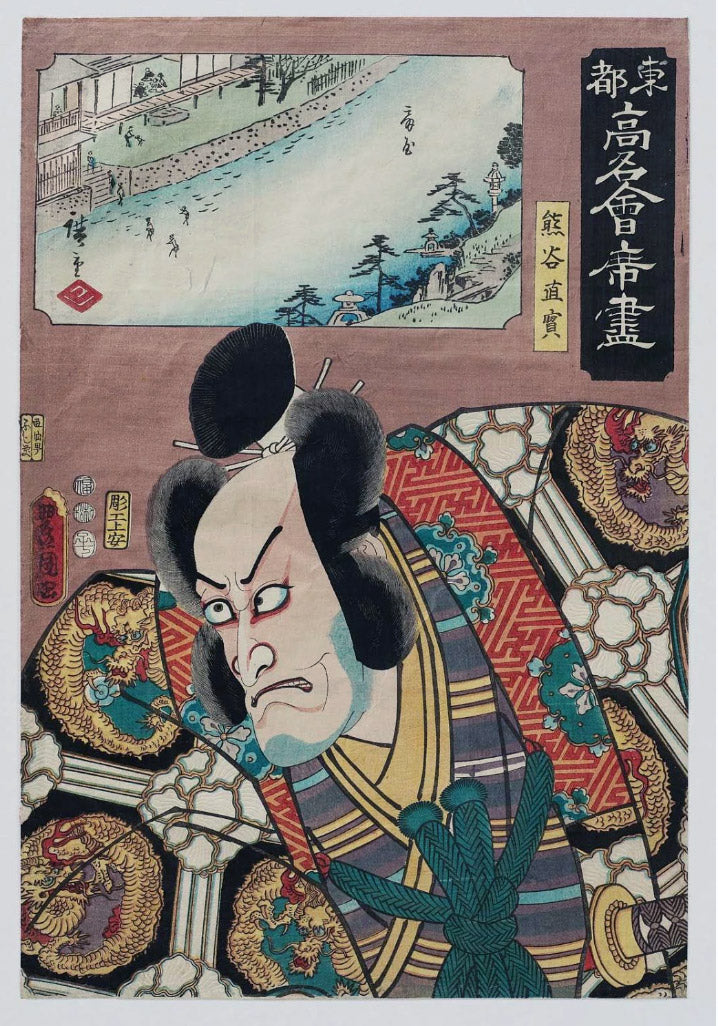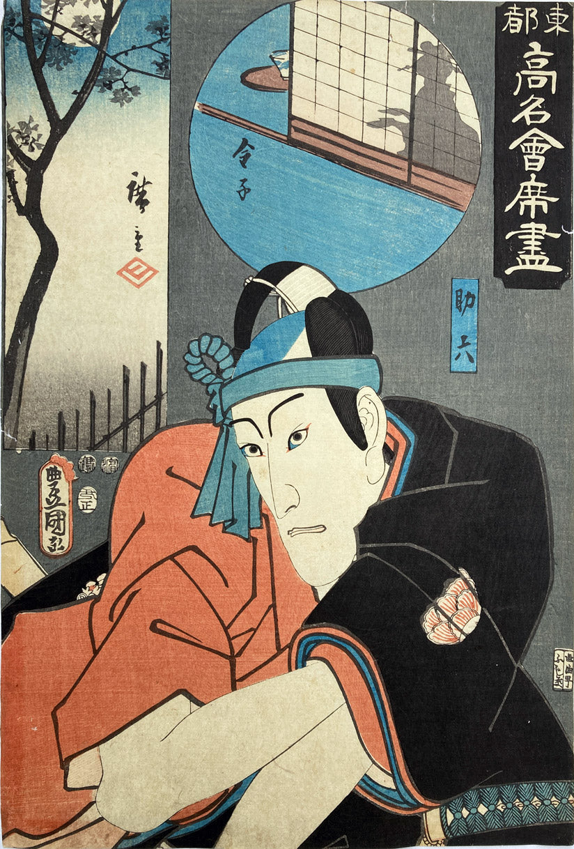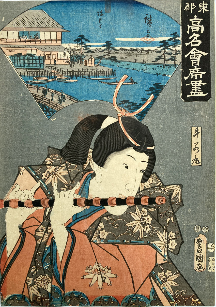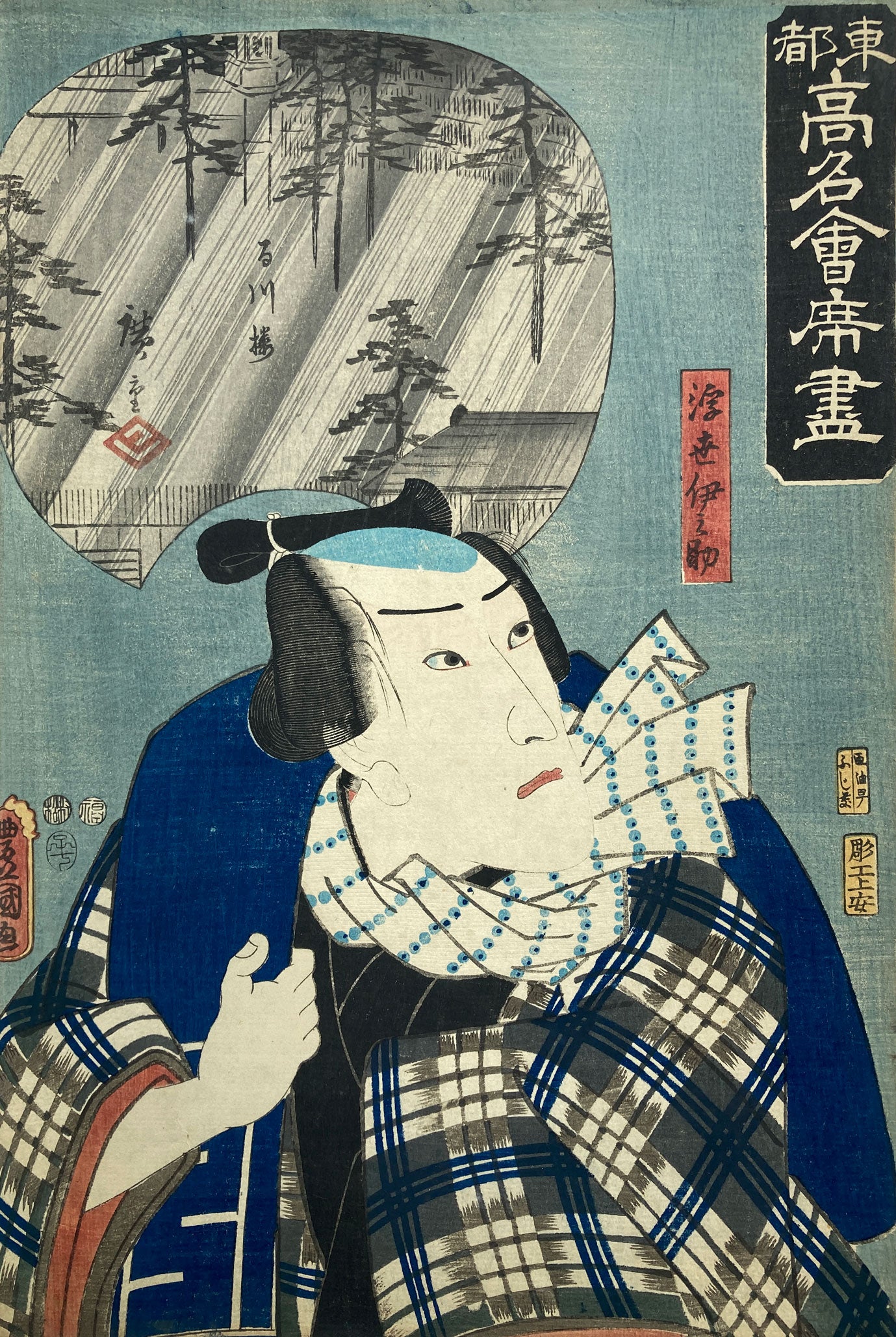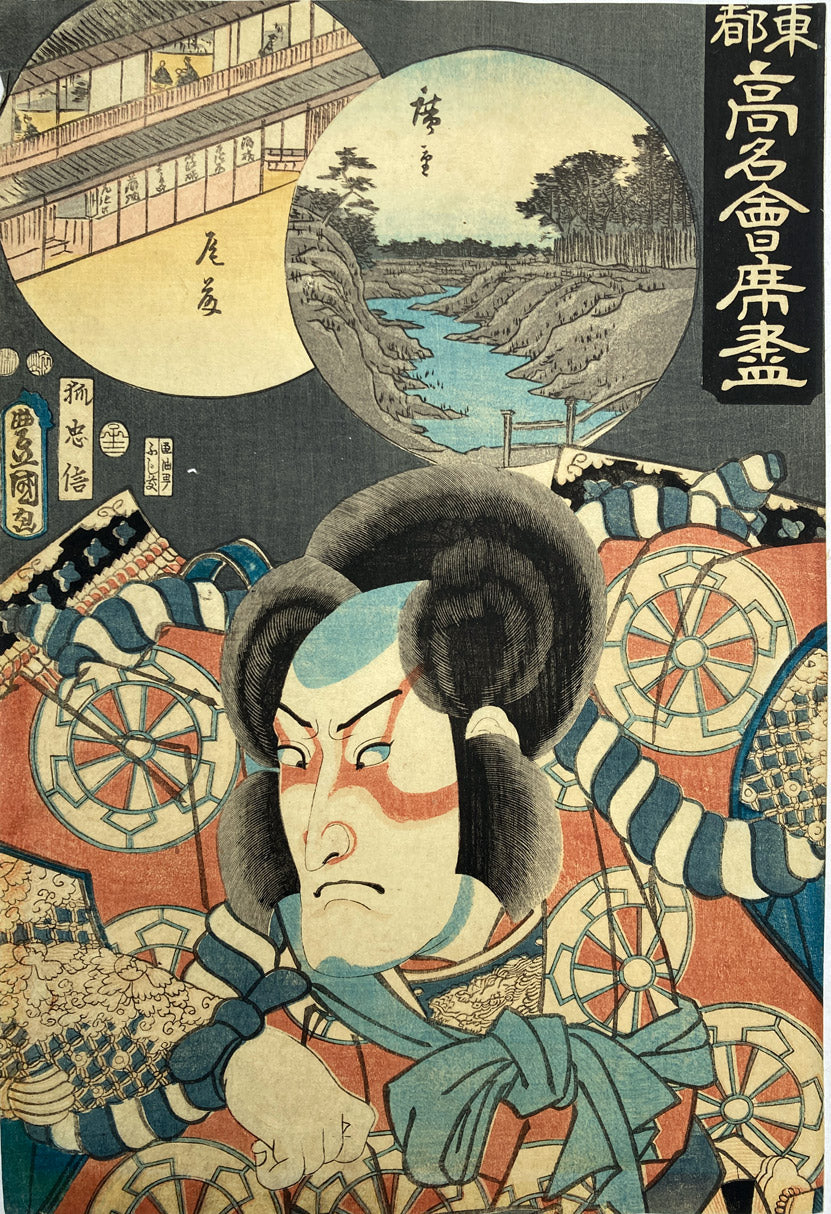 Kunisada designed the actor images in the foreground, while Hiroshige designed the inset landscapes, likely representing scenes near the respective restaurants. Our collection consists of about 20 of the 50 prints from this series. For more insights, check our YouTube video onJapanese Restaurant Prints. Fans of this collaboration might also appreciate the Kunisada and Hiroshige series “The 53 Stations by Two Brushes”. The prints are not presented in a particular sequence.