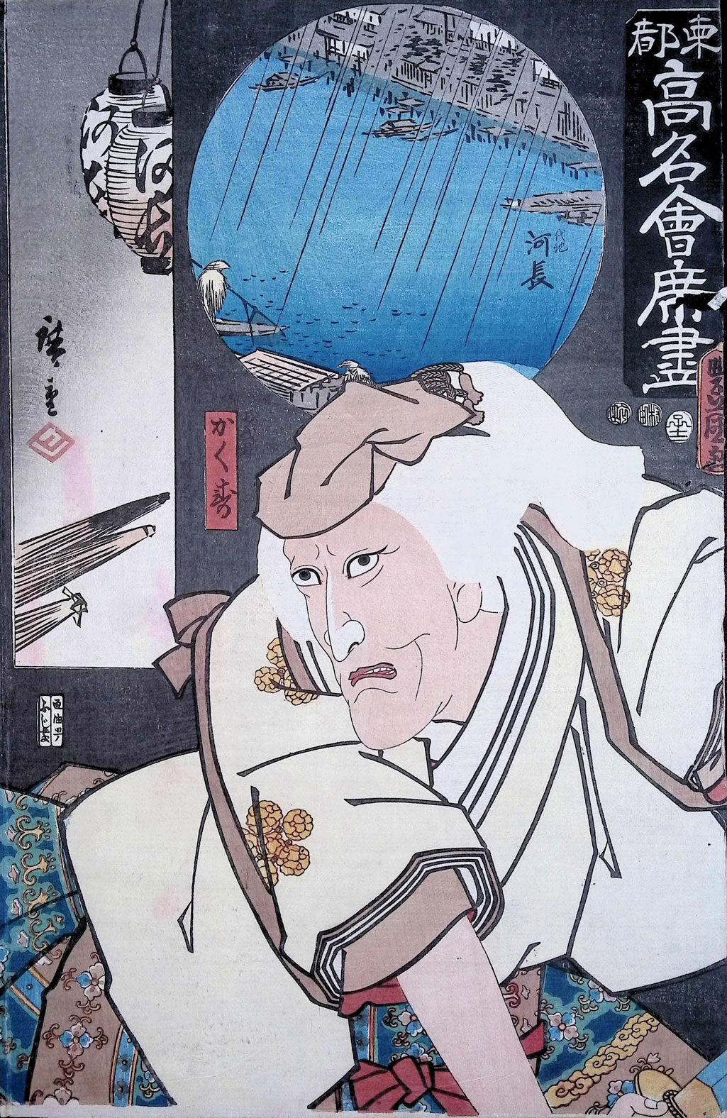 Kunisada designed the actor images in the foreground, while Hiroshige designed the inset landscapes, likely representing scenes near the respective restaurants. Our collection consists of about 25 of the 50 prints from this series. For more insights, check our YouTube video onJapanese Restaurant Prints. Fans of this collaboration might also appreciate the Kunisada and Hiroshige series “The 53 Stations by Two Brushes”. The prints are not presented in a particular sequence.