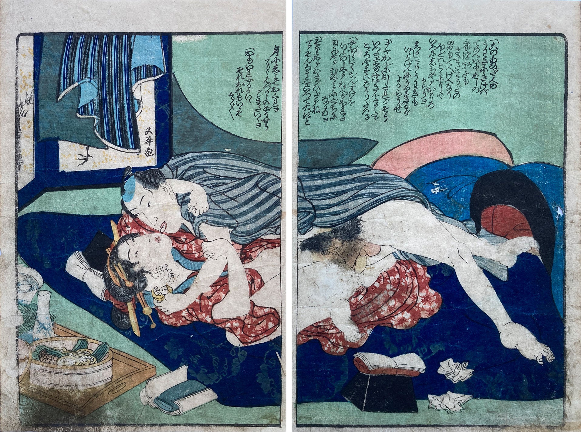 Size: Each Shunga picture (2) measures 28.1 cm x 21.2 cm.