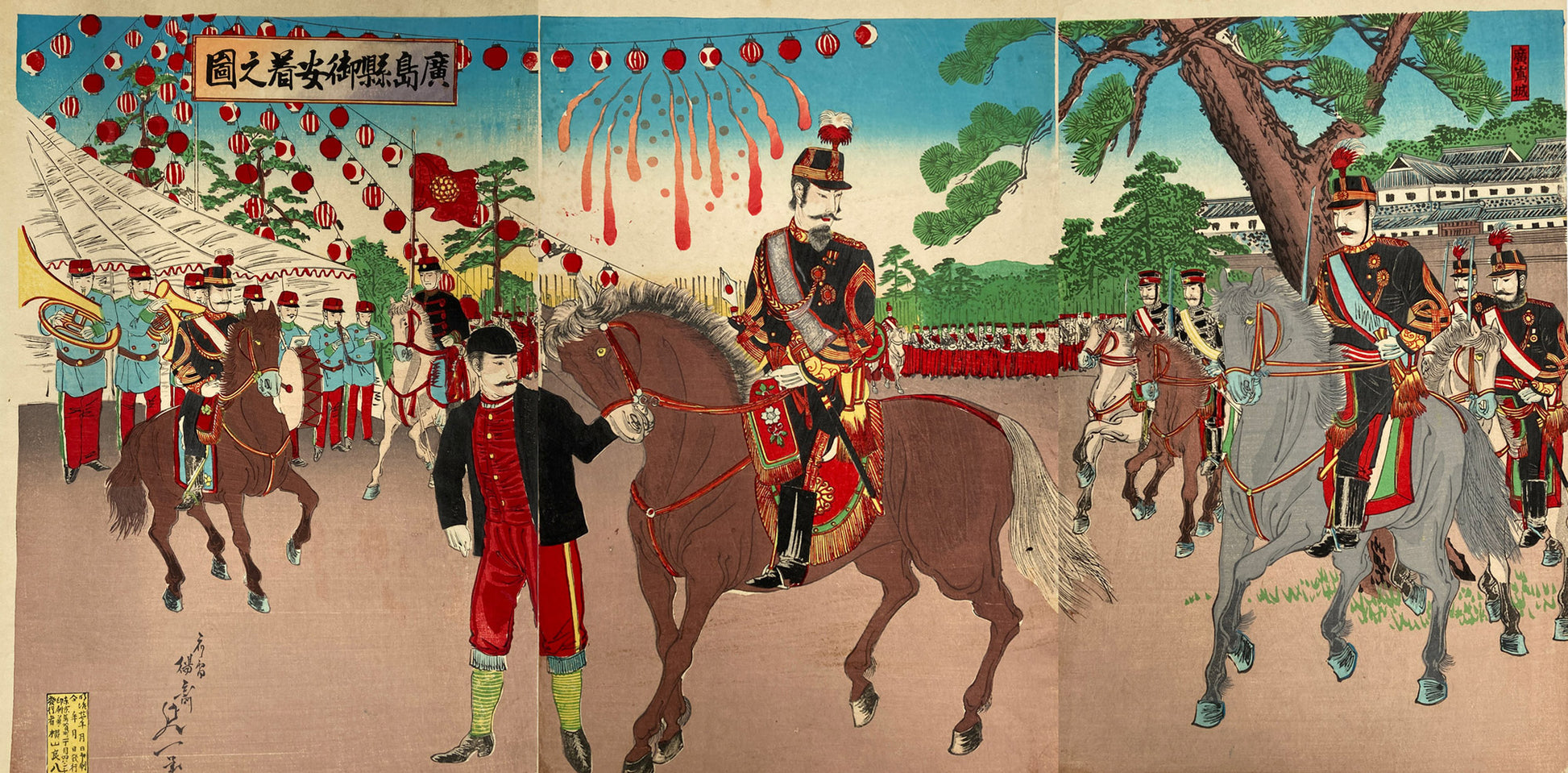 Excellent illustration of the Emperor's Safe Arrival at Hiroshima Prefecture (Hiroshima-ken goanchaku no zu)