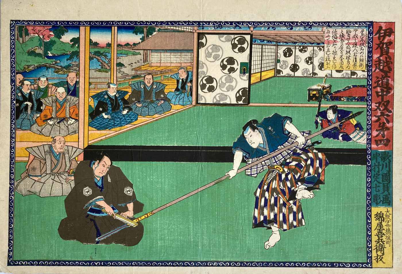 Act 4 in the kabuki play. Araki Masaemon blocks the attack from Konda Dainaiki.