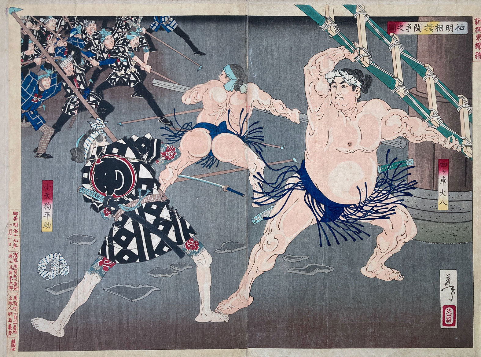 Yoshtoshi - Fighting of Firemen and Sumo Wrestlers