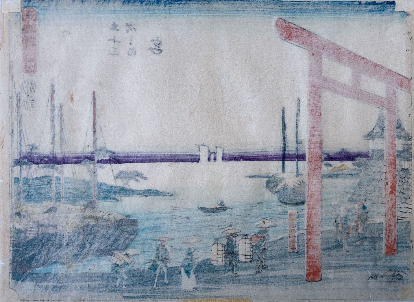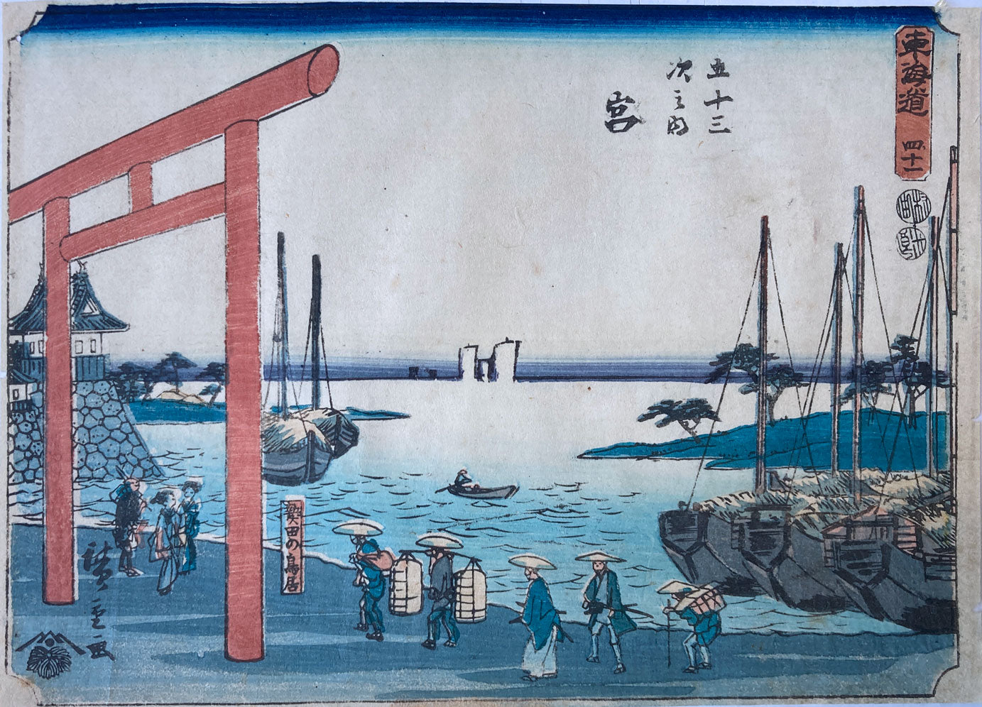 A print of the station "Miya" from the Gyosho Tokaido. 五十三次之内 宮 Miya, from the Fifty-three Stations.