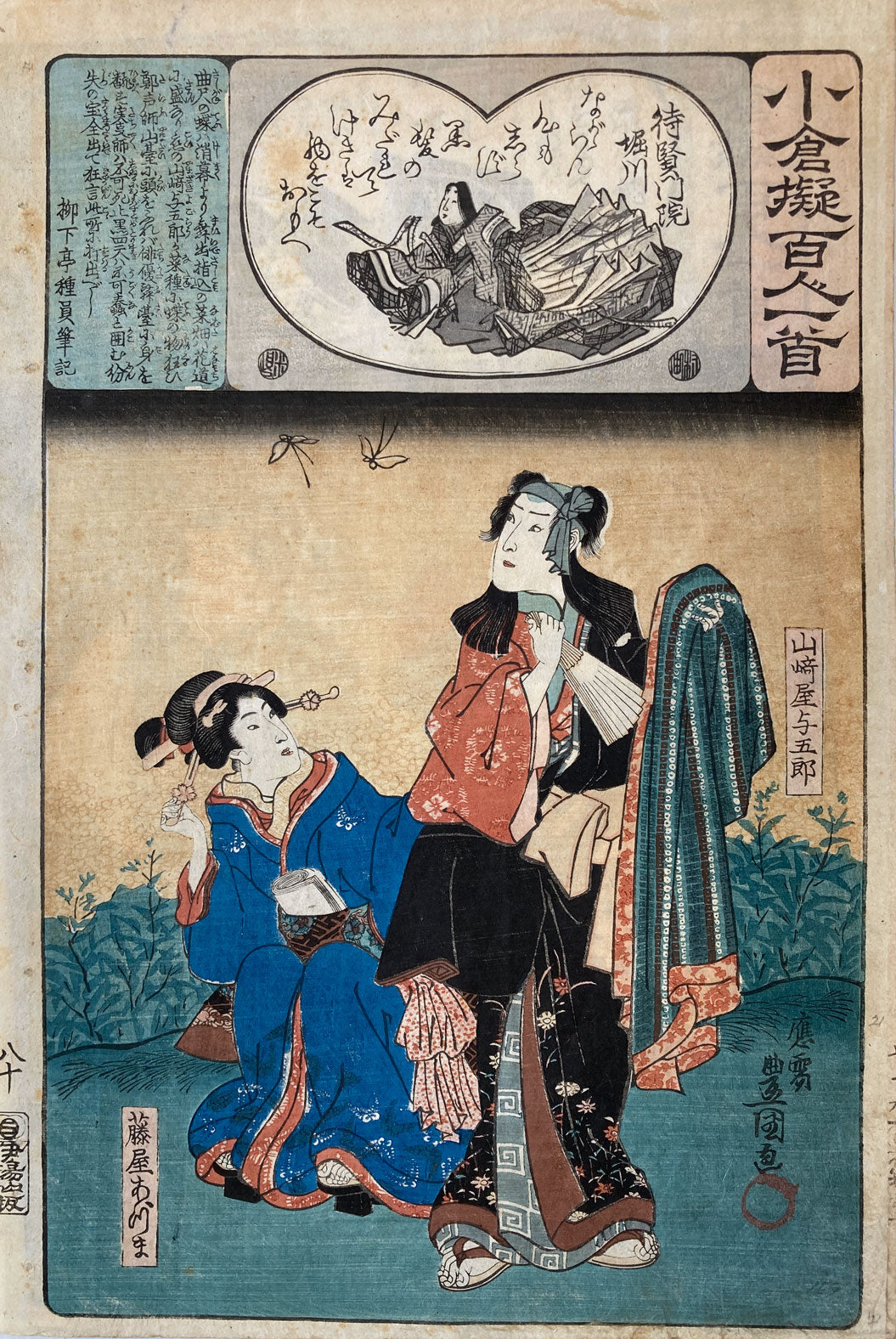 Poem by Taiken Monin no Horikawa : Yamazakiya Yogoro and Fujiya Aduma