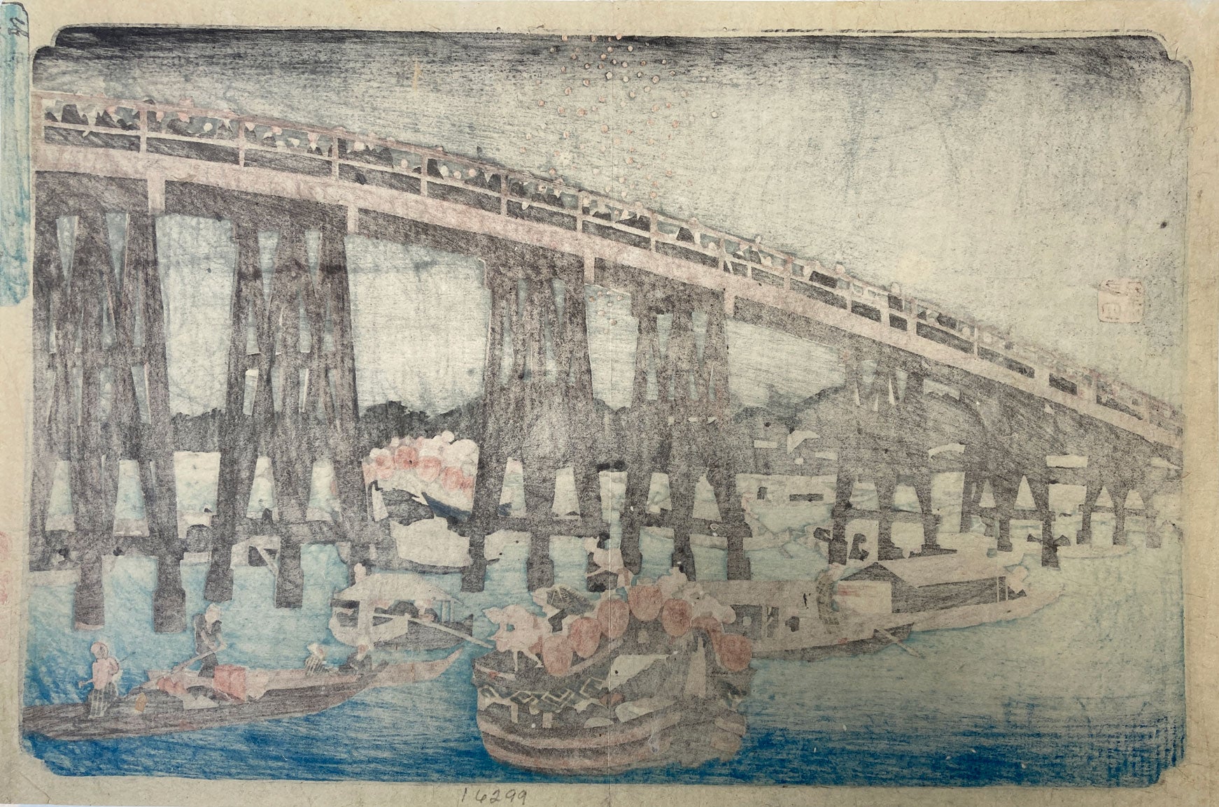 Famous Places of the Eastern Capital (Toto Meisho): Fireworks at Ryogoku Bridge.