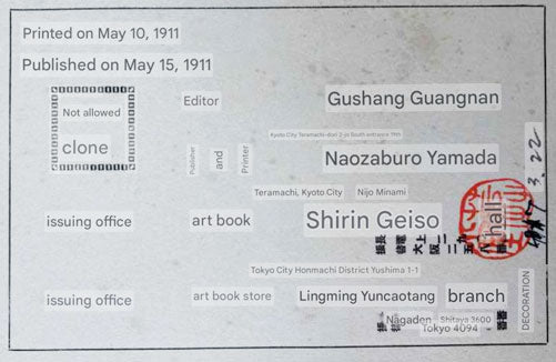 These prints are from a damaged accordion bound book. Note the image of the book publishing information/text (and translation) is not included with the print - it is just for informational purposes.