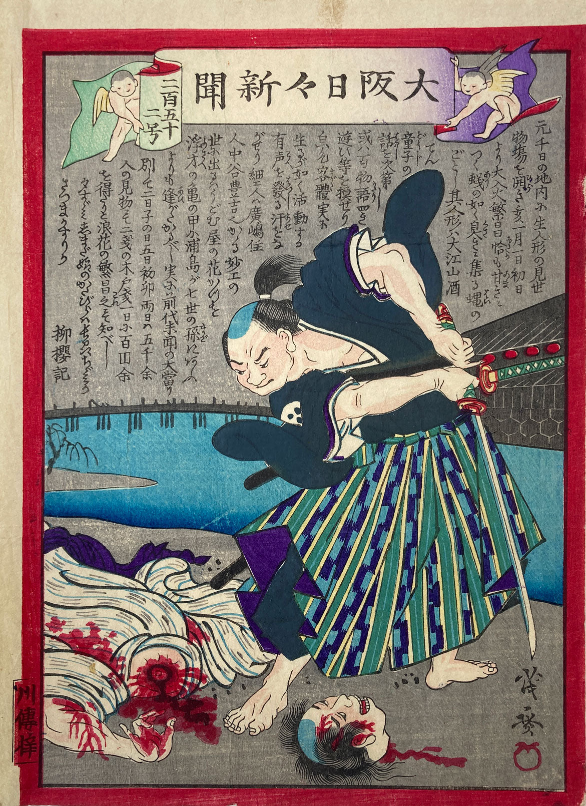Sensational Osaka newspaper insert. A samurai decapitates a man - reason unknown.
